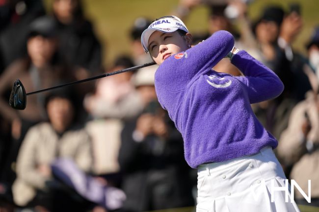 15일 경주에 위치한 경주 마우나오션 컨트리클럽(파72ㅣ6,556야드)에서 2025 시즌 대미를 장식할 '위믹스 챔피언십 2025'(총상금 10억 원ㅣ우승 상금 3억 원) DAY1 싱글매치플레이가 열렸다. 박현경이 9번홀 경기를 펼치고 있다. 마다솜(삼천리)이 박현경(메디힐) 상대로 1업으로 승리를 했다.