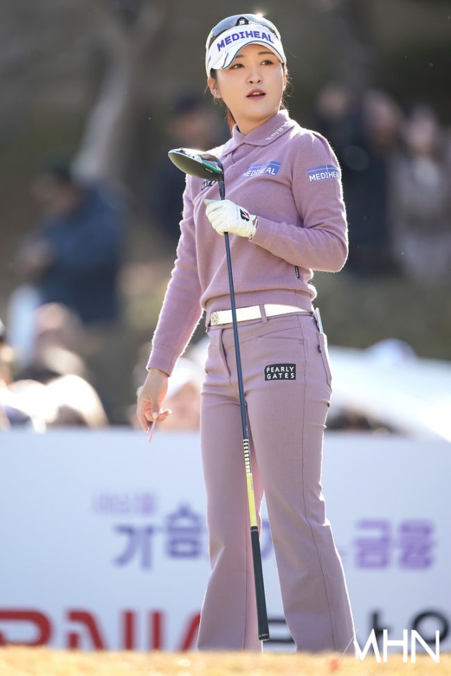 6일 부산에 위치한 아시아드 컨트리클럽에서 이벤트 대회 '2025 백송홀딩스 부산일보 채리티 매치 인 아시아드CC)'(우승 2억, 준우승 1억) 1라운드 경기가 열렸다. 상금에 50%는 기부금으로 전달 예정이다. 메디힐 이예원과 롯데 김효주 1경기가 열린 가운데, 이예원이 1번홀 경기를 펼치고 있다.