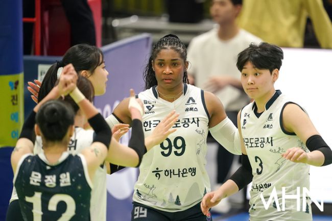 18일 수원실내체육관에서 '2025-2026 V-리그 여자부' 한국도로공사(1위-승점35-13승2패) 대 현대건설(2위-승점29-9승6패) 경기가 열렸다. 이날 결과에 따라 승점 차는 최소 3점으로 좁혀지거나, 최대 9점까지 벌어질 수 있다. 도로공사 모마가 경기를 펼치고 있다.