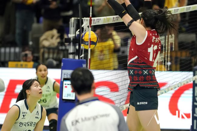 18일 수원실내체육관에서 '2025-2026 V-리그 여자부' 한국도로공사(1위-승점35-13승2패) 대 현대건설(2위-승점29-9승6패) 경기가 열렸다. 이날 현대건설이 도로공사 상대로 3-1(25-20, 25-19, 21-25, 25-13) 승점 차는 3점으로 좁혀졌다. 이날 MVP는 현대건설의 정지윤 선수가 차지했다.