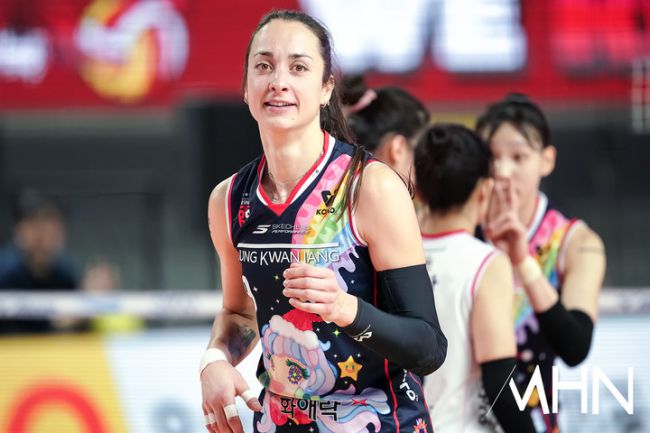 19일 대전충무실내체육관에서 '2025-2026 V-리그 여자부' 정관장 대 GS칼텍스 경기가 열렸다. 이날 정관장의 새로운 아시아 쿼터 선수 몽골 출신 아웃사이드 히터 자미얀푸렙 엥흐서열(등록명 인쿠시)가 새로운 무대 데뷔전을 펼쳤다. 자네테가 경기를 펼치고 있다.