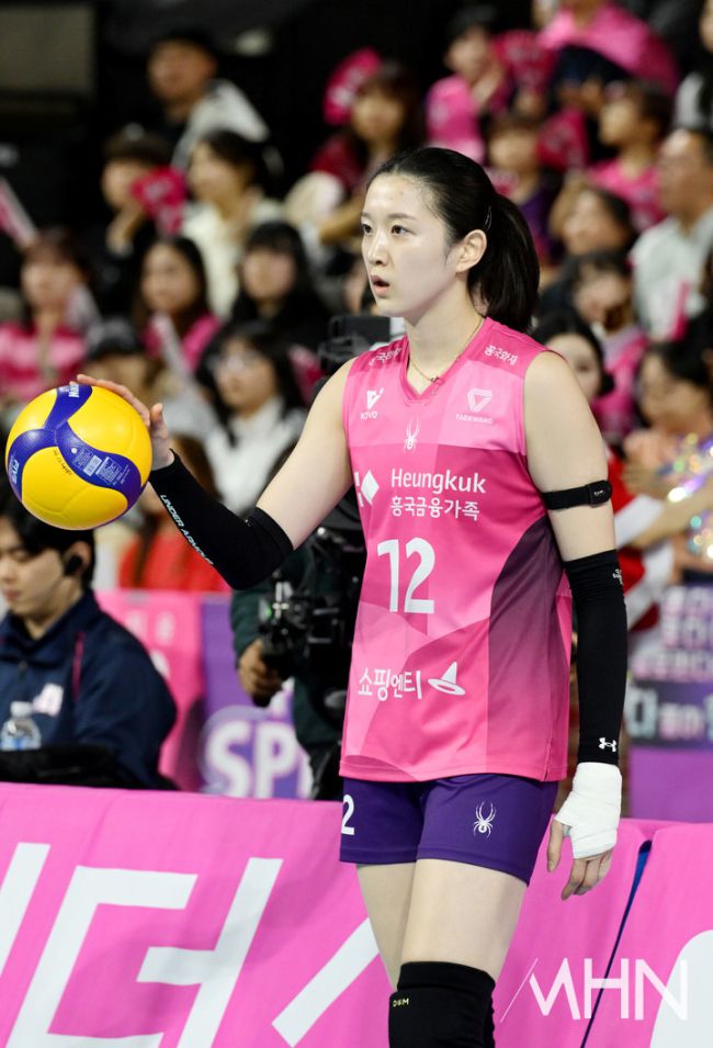 24일 오후 인천 삼산체육관에서 진에어 2025-2026 V리그 여자부 흥국생명과 IBK기업은행의 경기가 열렸다. 이날 흥국생명 이다현이 서브를 준비하고 있다.