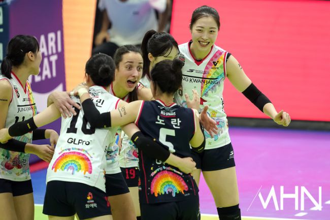 25일 수원실내체육관에서 '2025-2026 V-리그 여자부' 현재 6연승으로 2위(11승6패)를 달리는 현대건설과 7위(5승11패) 정관장 경기가 열렸다. 크리스마스를 맞아 전석 매진 경기를 펼치고 있다. 박은진이 경기를 펼치고 있다.