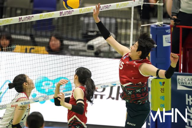 25일 수원실내체육관에서 '2025-2026 V-리그 여자부' 현재 6연승으로 2위(11승6패)를 달리는 현대건설과 7위(5승11패) 정관장 경기가 열렸다. 크리스마스를 맞아 전석 매진 경기를 펼치고 있다. 김희진이 경기를 펼치고 있다.