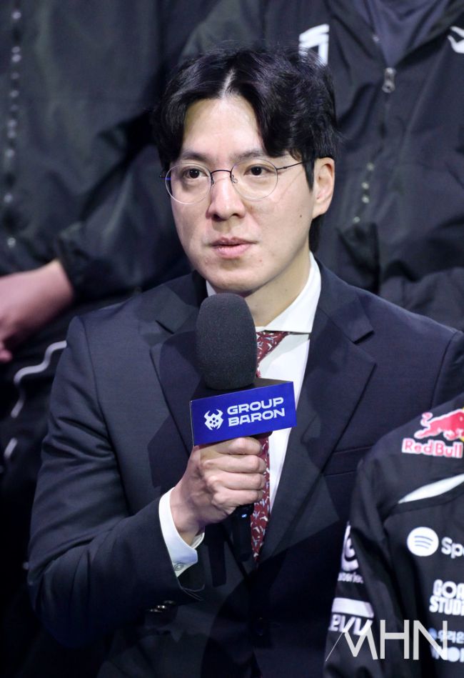 7일 오후 서울 종로구 롤파크 LCK아레나에서 '2026 LCK컵 미디어데이'가 열렸다. 김정균 T1 감독이 질의응답 시간을 가지고 있다. 한편, 이날 미디어데이에서는 각 팀 감독과 대표 선수 젠지 '캐니언' 김건부, T1 '도란' 최현준, 농심 '리헨즈' 손시우, DNS '라이프' 김정민, 브리온 '캐스팅' 신민제, 한화생명 '카나비' 서진혁, 디플러스