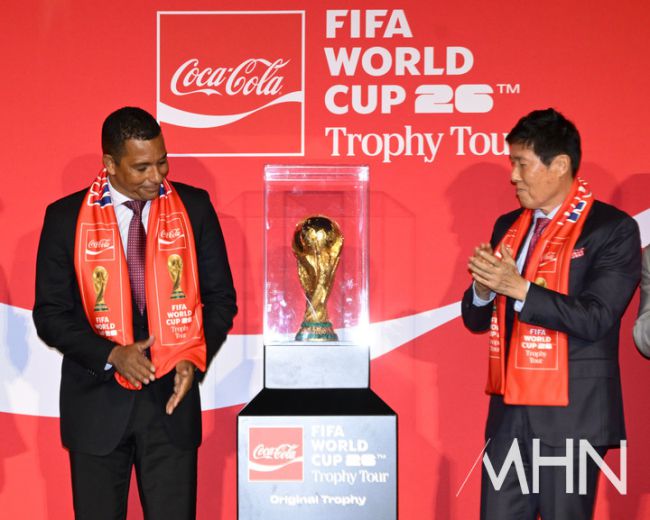 16일 오후 서울 용산구 CGV용산아이파크몰에서 'FIFA 월드컵 트로피 투어 by 코카콜라' 미디어 간담회가 진행됐다. 한편, 코카콜라는 16일부터 17일까지 한국에서 'FIFA 월드컵 트로피 투어'를 진행한다. 이번에 한국을 방문하는 오리지널 FIFA 월드컵 트로피는 오는 6월부터 캐나다·멕시코·미국의 공동 개최로 열리는 FIFA 월드컵 2026의 우승