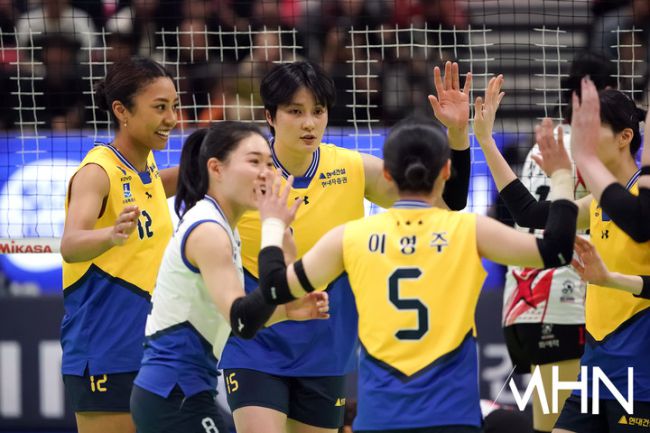 16일 수원실내체육관에서 '2025-2026 V-리그 여자부' 현대건설과 정관장 경기가 열렸다. 정관장은 승점 18(6승 16패)로 7위 최하위를 기록 중이며 현대건설은 2위(승점 39)에 올라 있다. 현대건설 김희진이 경기를 펼치고 있다.