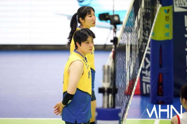 16일 수원실내체육관에서 '2025-2026 V-리그 여자부' 현대건설과 정관장 경기가 열렸다. 정관장은 승점 18(6승 16패)로 7위 최하위를 기록 중이며 현대건설은 2위(승점 39)에 올라 있다. 현대건설 김희진이 경기를 펼치고 있다.