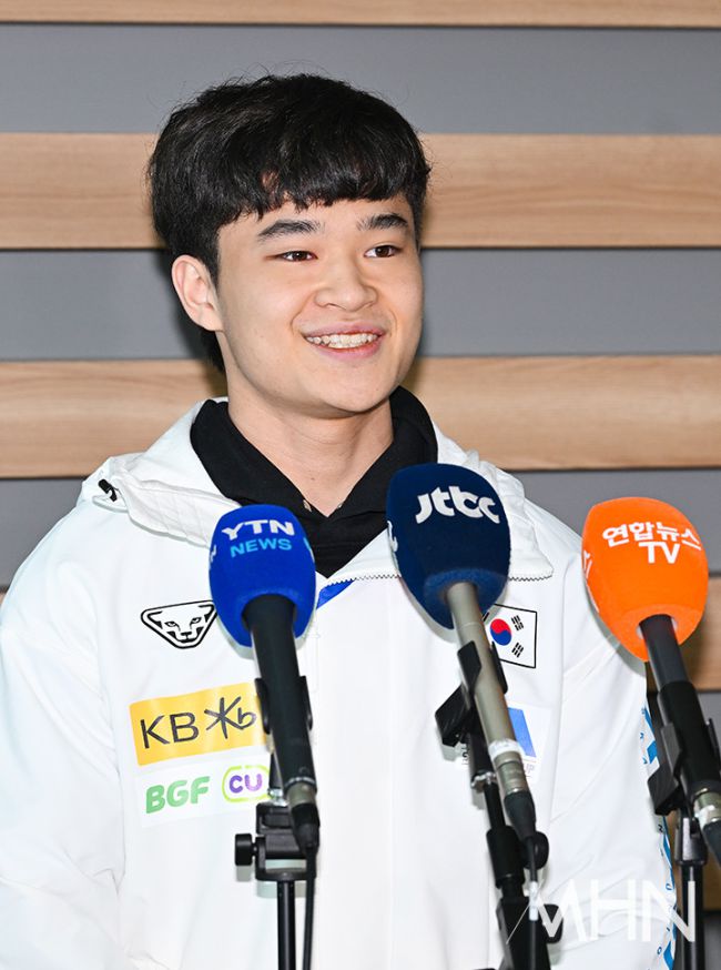 피겨스케이팅 김현겸 선수가 20일 오전 인천 영종도 인천국제공항을 통해 사대륙선수권대회에 출전 차 베이징으로 출국했다. 이날 김현겸이 출국 전 인터뷰를 하고 있다. 2026 ISU 피겨스케이팅 사대륙선수권대회는 21일(수)부터 25일(일)까지 중국 베이징에서 개최된다.