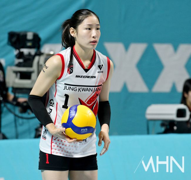 20일 서울 장충체육관에서 '2025-2026 V-리그 여자부' GS칼텍스와 정관장 경기가 열렸다. 정관장 인쿠시가 서브를 준비하고 있다.