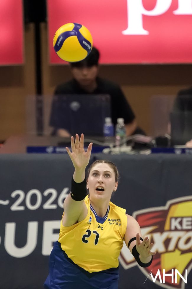 21일 수원실내체육관에서 '2025-2026 V-리그 여자부' 현대건설과 페퍼저축은행 경기가 열렸다. 2위(14승9패) 현대건설과 6위(8승15패) 페퍼저축은행이 1-1로 경기를 펼치고 있다. 현대건설 카리가 경기를 펼치고 있다.
