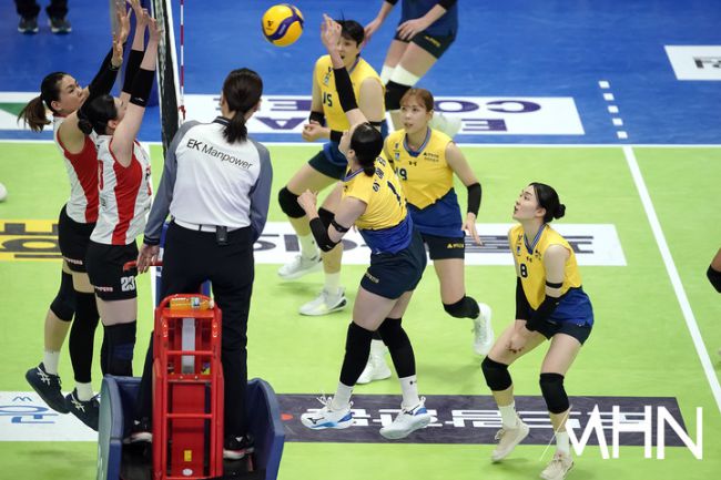 21일 수원실내체육관에서 '2025-2026 V-리그 여자부' 현대건설과 페퍼저축은행 경기가 열렸다. 2위(14승9패) 현대건설과 6위(8승15패) 페퍼저축은행이 1-2 경기를 펼치고 있다. 현대건설 이예림이 경기를 펼치고 있다.
