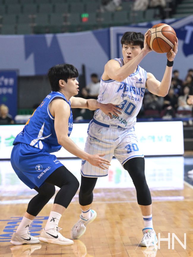 22일 오후 서울 잠실실내체육관에서 2025-2026 LG전자 프로농구 서울 삼성 썬더스와 대구 한국가스공사 페가수스의 경기가 열렸다. 대구 한국가스공사 김국찬이 경기를 펼치고 있다.
