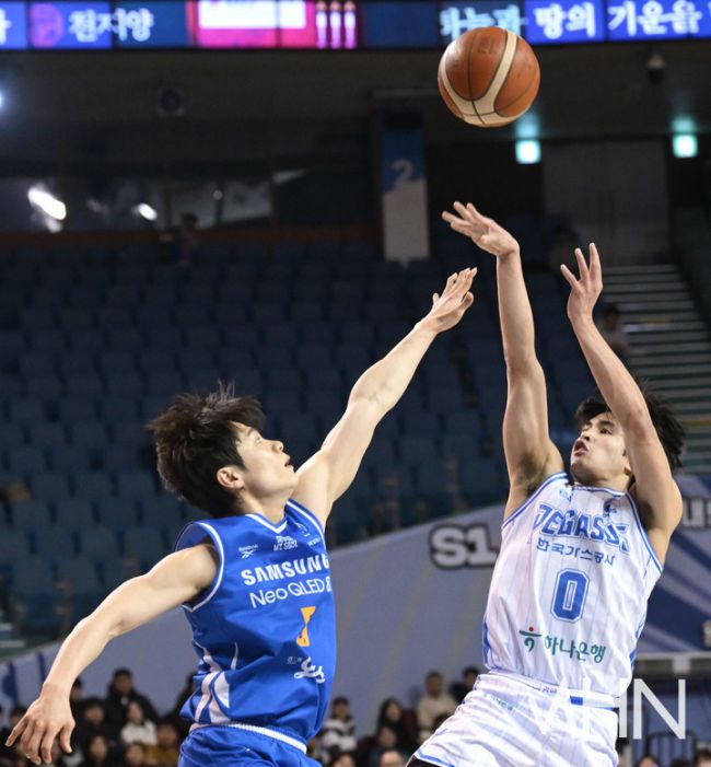 22일 오후 서울 잠실실내체육관에서 2025-2026 LG전자 프로농구 서울 삼성 썬더스와 대구 한국가스공사 페가수스의 경기가 열렸다. 대구 한국가스공사 샘조세프 벨란겔이 슛을 시도하고 있다.