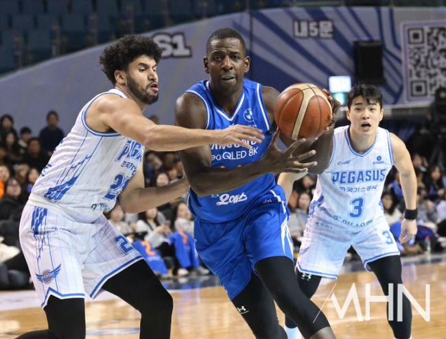 22일 오후 서울 잠실실내체육관에서 2025-2026 LG전자 프로농구 서울 삼성 썬더스와 대구 한국가스공사 페가수스의 경기가 열렸다. 서울 삼성 앤드류 니콜슨이 경기를 펼치고 있다.