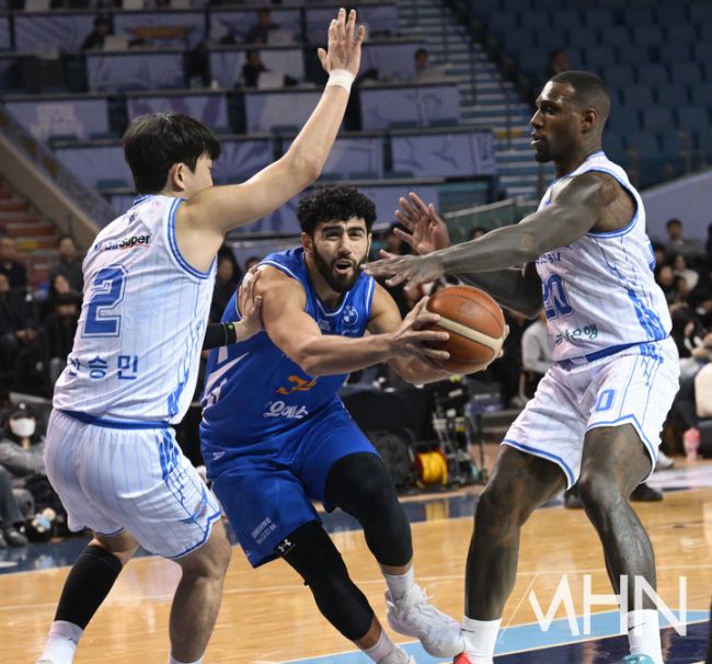 22일 오후 서울 잠실실내체육관에서 2025-2026 LG전자 프로농구 서울 삼성 썬더스와 대구 한국가스공사 페가수스의 경기가 열렸다. 서울 삼성 케렘 칸터가 돌파를 하고 있다.