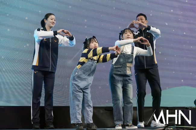 25일 춘천 호반체육관에서 '진에어 2025~2026 V-리그 올스타전'이 열렸다. 현대건설 양효진이 역대 최다 17번째 올스타 무대에 오르고, 한국전력 신영석은 6시즌 연속 팬투표 1위로 출전했다. 이다현과 신영석이 올스타전 챌린지 투어 댄스 경연을 펼치고 있다.