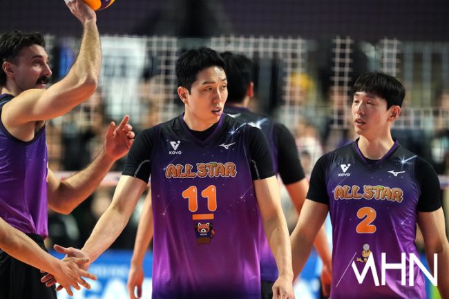 25일 춘천 호반체육관에서 '진에어 2025~2026 V-리그 올스타전'이 열렸다. 현대건설 양효진이 역대 최다 17번째 올스타 무대에 오르고, 한국전력 신영석은 6시즌 연속 팬투표 1위로 출전했다. 최민호가 경기를 펼치고 있다.
