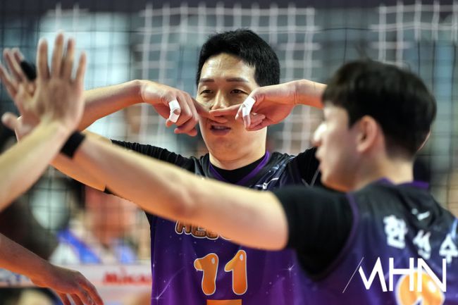 25일 춘천 호반체육관에서 '진에어 2025~2026 V-리그 올스타전'이 열렸다. 현대건설 양효진이 역대 최다 17번째 올스타 무대에 오르고, 한국전력 신영석은 6시즌 연속 팬투표 1위로 출전했다. 최민호가 경기를 펼치고 있다.
