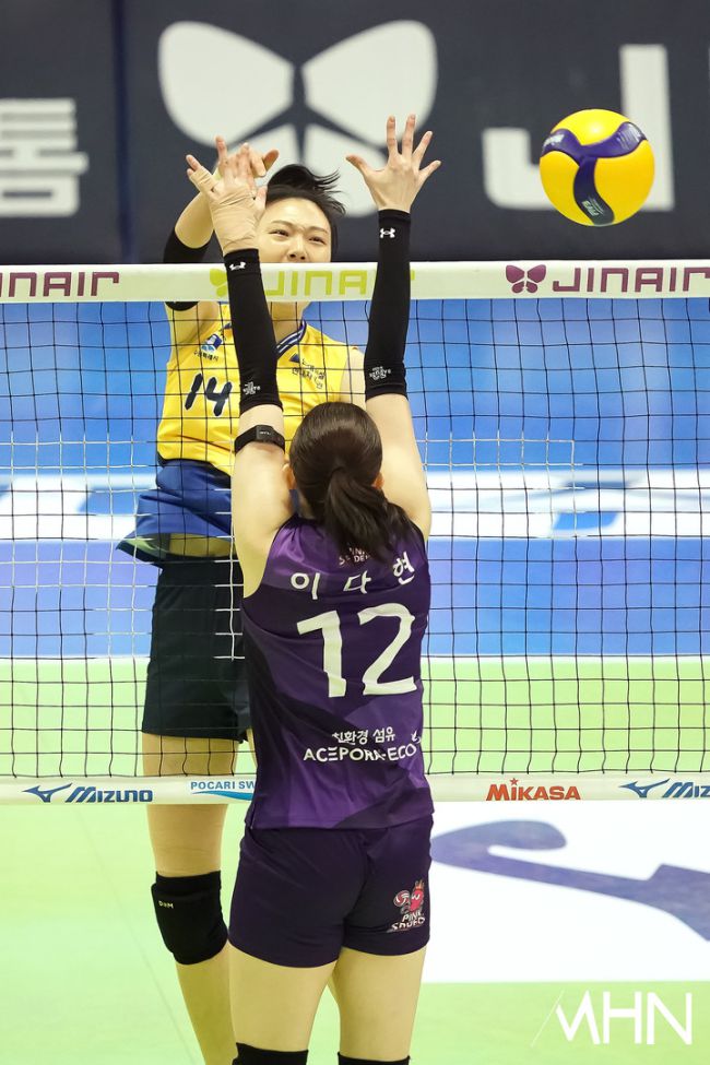 5일 수원실내체육관에서 '진에어 2025~2026 V-리그' 여자부 현대건설(2위 61점 32경기 21승 11패)과 흥국생명(3위 53점 33경기 17승 16패) 경기가 열렸다. 양효진이 경기를 펼치고 있다.