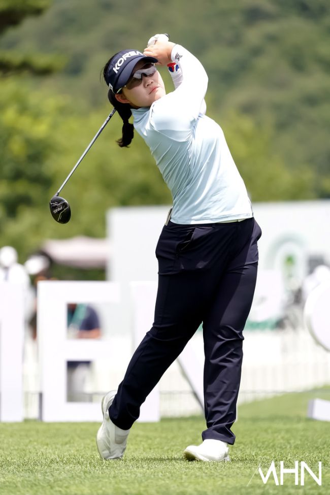 12일 충북 음성에 위치한 레이보우힐스 컨트리클럽(파72ㅣ6,767야드)에서 'DB그룹 제39회 한국여자오픈골프선수권대회'(총상금 12억 원, 우승 3억 원) 1라운드가 열렸다. 국가대표 홍수민, 최혜정, 박혜준(두산건설위브)이 10번홀 경기를 펼치고 있다.