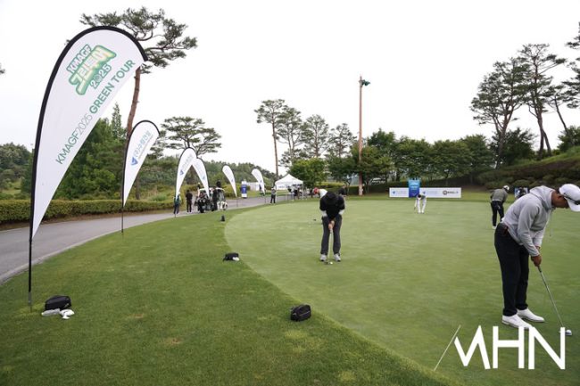 24일 충북 충주시에 위치한 중원 골프클럽(파72ㅣ5,842미터)에서 한국미드아마추어골프연맹 그린투어 5차전 'KMAGF 2025 수림건설 그린투어' 결승전 경기가 열렸다. 정지훈이 연습 그린에서 퍼트 연습을 하고 있다.