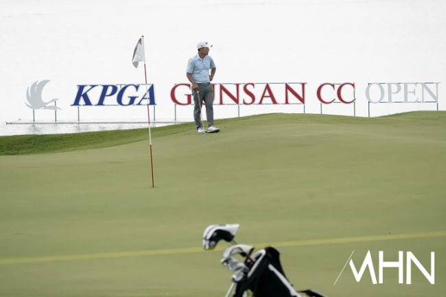 26일 전북 군산시에 위치한 군산CC 토너먼트 코스 (파72/ 7,611야드)에서 'KPGA 군산CC 오픈 (총상금 7억 원+α/ 우승상금 1억 4천만 원+α)' 1라운드 경기가 열렸다. 강성훈이 18번홀 경기를 펼치고 있다.