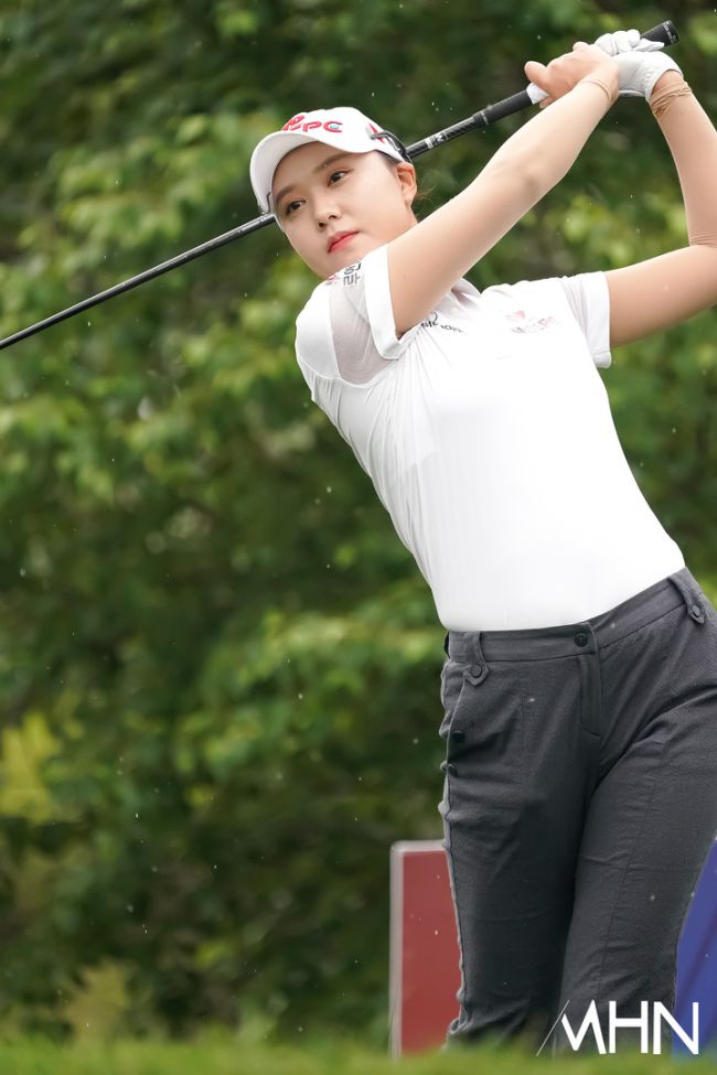 28일 강원도 평창에 위치한 버치힐 컨트리클럽(파72/ 6,429야드)에서 '맥콜-모나 용평 오픈 with SBS Golf(총상금 10억 원/ 우승상금 1억 8천만 원)' 2라운드 경기가 열렸다. 최민경(지벤트), 서어진(대보건설), 문정민(덕신EPC)이 10번홀 경기를 펼치고 있다.