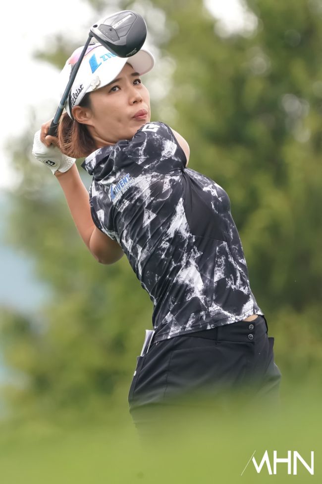 29일 강원도 평창에 위치한 버치힐 컨트리클럽(파72/ 6,429야드)에서 '맥콜-모나 용평 오픈 with SBS Golf(총상금 10억 원/ 우승상금 1억 8천만 원)' 최종 3라운드 경기가 열렸다. 한진선(메디힐), 임희정(두산건설위브), 최민경(지벤트)이 1번홀 경기를 펼치고 있다.