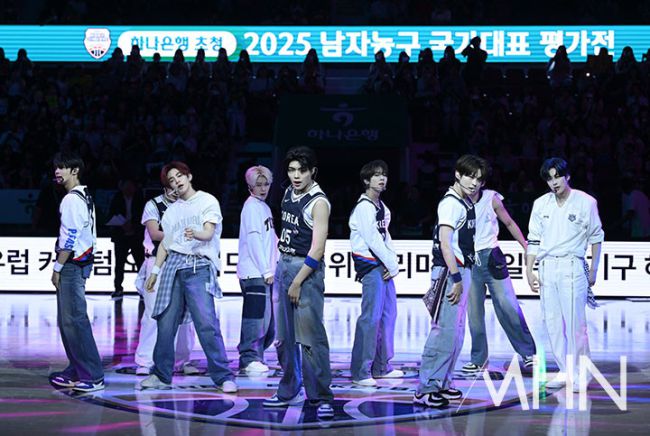 11일 오후 안양 정관장아레나에서 '하나은행 초청 2025 남자농구 국가대표 평가전'이 개최됐다. 제로베이스원이 축하공연을 펼치고 있다. 한편, 이번 평가전은 지난 4월 하나은행이 대한민국농구협회와 농구 국가대표팀의 공식 후원 협약을 체결한 이후 처음 열리는 경기다. 일본과의 2연전은 11일과 13일, 카타르와의 2연전은 18일과 20일에 안양 정관장 아레
