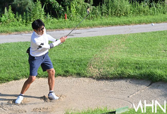 'KMAGF 2025 경동인베스트 그린투어' 8차전 경기가 29일 오전 경기도 광주시 뉴서울CC 문화코스에서 진행됐다. 이날 박종진이 1번 홀 벙커에서 어프로치샷을 하고 있다.