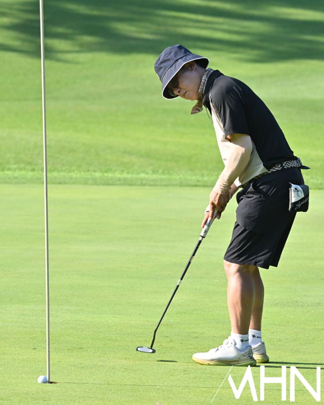 'KMAGF 2025 경동인베스트 그린투어' 8차전 경기가 29일 오전 경기도 광주시 뉴서울CC 문화코스에서 진행됐다. 이날 1번 홀 이홍재가 퍼팅샷 한 공이 홀을 돌아 나오고 있다.