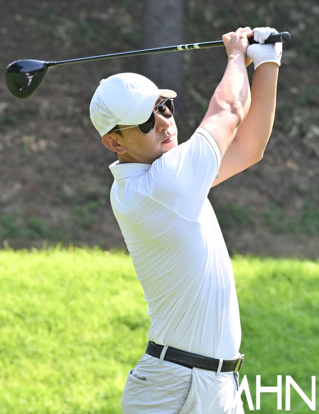 'KMAGF 2025 경동인베스트 그린투어' 8차전 경기가 29일 오전 경기도 광주시 뉴서울CC 문화코스에서 진행됐다. 이날 박종구가 18번 홀 티샷을 하고 있다.