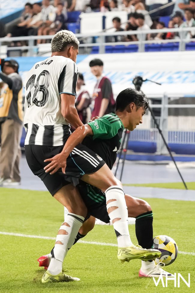 '2025 쿠팡플레이 시리즈' 잉글랜드 프리미어리그 뉴캐슬 유나이티드 FC 와 K리그 XI 경기가 30일 오후 수원월드컵경기장에서 열렸다. 뉴캐슬 오슬라가 경기를 펼치고 있다.