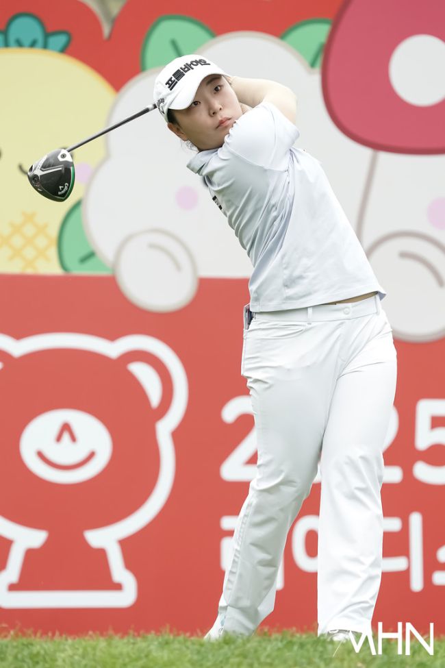 '2025 오로라월드 레이디스 챔피언십'(총상금 10억원, 우승상금 1억8천만 원)이 3일 강원도 원주시에 위치한 오로라 골프&리조트(파72/6,509야드)에서 최종 4라운드가 열렸다. 정주리(프롬바이오)가 1번홀 경기를 펼치고 있다.