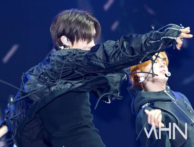 그룹 투어스(TWS)가 13일 오후 서울 성동구 예스24 라이브홀에서 열린 미니 4집 '플레이 하드' 쇼케이스에 참석했다. 투어스가 무대를 선보이고 있다. 투어스(신유, 도훈, 영재, 한진, 지훈, 경민)의 미니 4집 '플레이 하드'는 젊음과 열정을 모두 던져 전력으로 임하자는 의미를 담은 앨범이다. 투어스는 과열된 상태를 뜻하는 타이틀곡 '오버드라이브'를