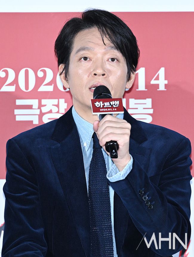 배우 박지환이 11일 오전 서울 광진구 롯데시네마 건대입구점에서 열린 '하트맨' 시사회 및 기자간담회에 참석해 질문에 답하고 있다. 기자간담회에는 배우 권상우, 문채원, 박지환, 표지훈과 최원섭 감독이 참석했다. '하트맨'은 돌아온 남자 승민(권상우)이 다시 만난 첫사랑을 놓치지 않기 위해 고군분투하지만, 그녀에게 절대 말할 수 없는 비밀이 생기며 벌어지는