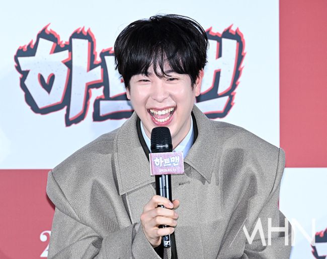 배우 표지훈이 11일 오전 서울 광진구 롯데시네마 건대입구점에서 열린 '하트맨' 시사회 및 기자간담회에 참석해 질문에 답하고 있다. 기자간담회에는 배우 권상우, 문채원, 박지환, 표지훈과 최원섭 감독이 참석했다. '하트맨'은 돌아온 남자 승민(권상우)이 다시 만난 첫사랑을 놓치지 않기 위해 고군분투하지만, 그녀에게 절대 말할 수 없는 비밀이 생기며 벌어지는
