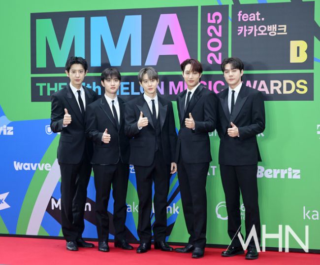 그룹 엑소가 20일 오후 서울 구로구 고척스카이돔에서 열린 'MMA2025(멜론뮤직어워드)' 레드카펫에 참석해 포즈를 취하고 있다. 한편, '멜론뮤직어워드'는 오는 20일 오후 5시부터 고척스카이돔에서 개최된다. 본식 공연에는 지드래곤(G-DRAGON), 박재범, 10CM, 지코, EXO, 우즈(WOODZ), 제니, 에스파(aespa), 아이브(IVE),