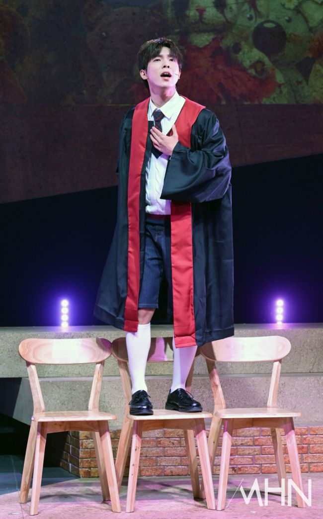 배우 조성필이 23일 서울 삼성동 백암아트홀에서 진행된 뮤지컬 '말리' 프레스콜에 참석해 시연을 선보이고 있다. 뮤지컬 '말리'는 화려한 아역 스타였던 과거를 가졌지만, 현재는 평범한 삶을 살아가는 18세 '말리'가 과거로 돌아가 인형 '레비'의 몸으로 11세의 자신을 만나는 이야기다.