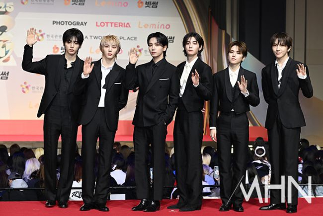 그룹 보이넥스트도어가 25일 오후 인천 중구 인스파이어 아레나에서 열리는 '2025 SBS 가요대전' 포토월에 참석하고 있다. 'SBS 가요대전'에느 U-KNOW(유노윤호), TAEYONG(태용), NCT DREAM(엔시티 드림), THE BOYZ(더보이즈), Stray Kids(스트레이 키즈), ATEEZ(에이티즈), ITZY(있지), TOMORROW X