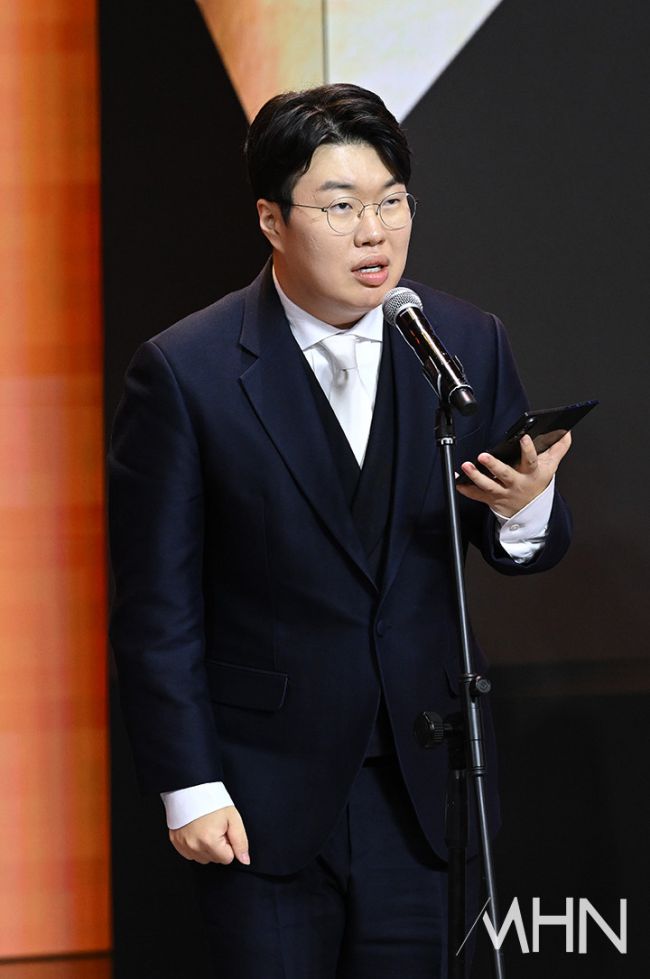 스트리머 봉준이 27일 오후 서울 마포구 상암 SOOP 콜로세움에서 진행된 '2025 스트리머 대상'에서 소감을 전하고 있다. '스트리머 대상'은 SOOP의 연말 시상식으로 2011년 시작돼 올해로 15회를 맞았다. 올해 행사는 '모두가 하나의 무대로 연결되는 축제의 장'이라는 콘셉트로 진행한다.