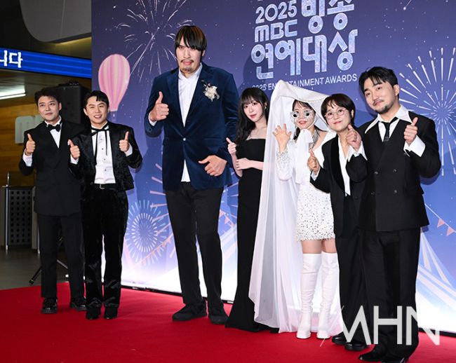 전현무, 양세형, 최홍만, 쯔양, 홍현희, 송은이, 유병재가 29일 오후 서울 마포구 상암동 MBC 미디어센터 공개홀에서 진행된 '2025 MBC 방송연예대상'에 참석하고 있다. '2025 MBC 방송연예대상'은 MBC 예능 프로그램과 함께 2025년의 즐거움을 책임진 예능인들이 한자리에 모여 올해 MBC의 예능을 결산하는 자리다. '2025 MBC 방송연