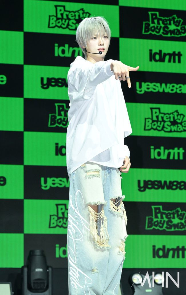 5일 오후 서울 한남동 블루스퀘어에서 그룹 아이덴티티(idntt) yesweare 새 앨범 'yesweare' 발매 기념 쇼케이스가 열렸다. 이날 쇼케이스에 참석한 아이덴티티 김성준이 포즈를 취하고 있다. 한편, 아이덴티티(idntt)는 모드하우스에서 선보이는 새로운 보이그룹으로, unevermet을 시작으로 yesweare를 거쳐 24명의 완전체 itsn