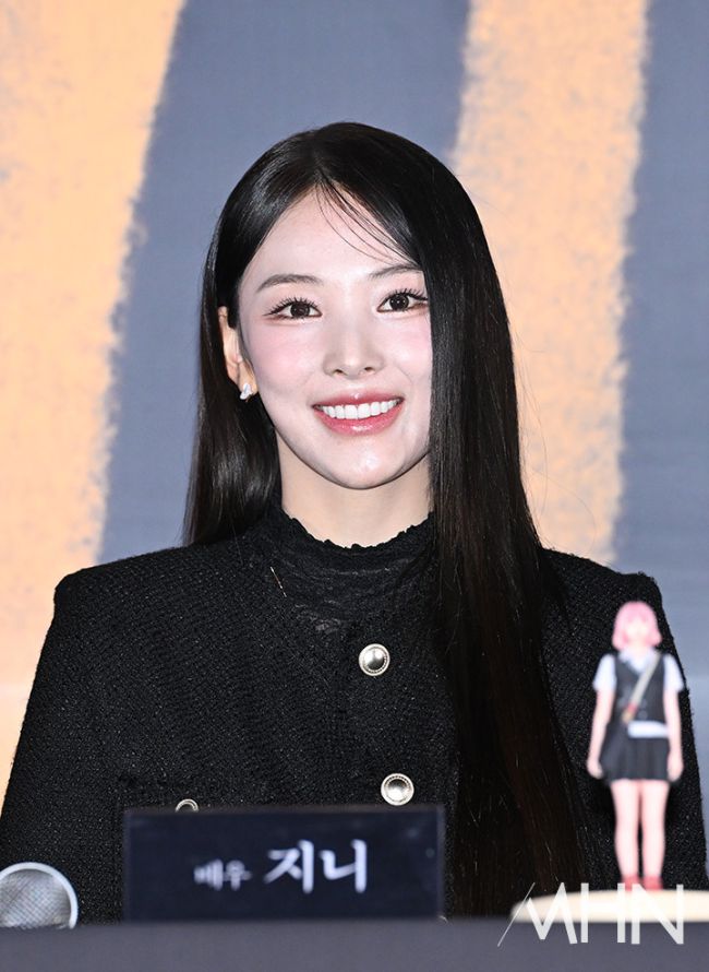 가수 겸 배우 지니가 6일 오후 서울 용산구 CGV용산아이파크몰에서 진행된 영화 '보이' 언론 시사회 및 기자간담회에 참석하고 있다. 기자간담회에는 이상덕 감독과 배우 조병규, 지니가 참석했다. '보이'는 근미래 디스토피아, 단 한번의 사랑이 모든 것을 뒤흔드는 네온-느와르. '보이'는 14일 극장에서 개봉한다.