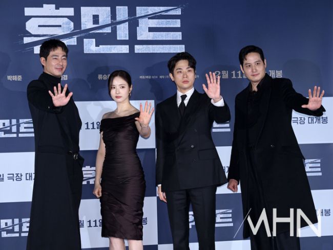 배우 조인성, 신세경, 박정민, 박해준이 12일 오전 서울 광진구 롯데시네마 건대입구에서 열린 영화 '휴민트'(감독 류승완) 제작보고회에 참석했다. 류승완 감독의 '휴민트'는 비밀도, 진실도 차가운 얼음 바다에 수장되는 블라디보스토크에서 서로 다른 목적을 가진 이들이 격돌하는 이야기를 그린다. 조인성, 박정민, 박해준, 신세경 등이 출연했다. 오는 2월 1
