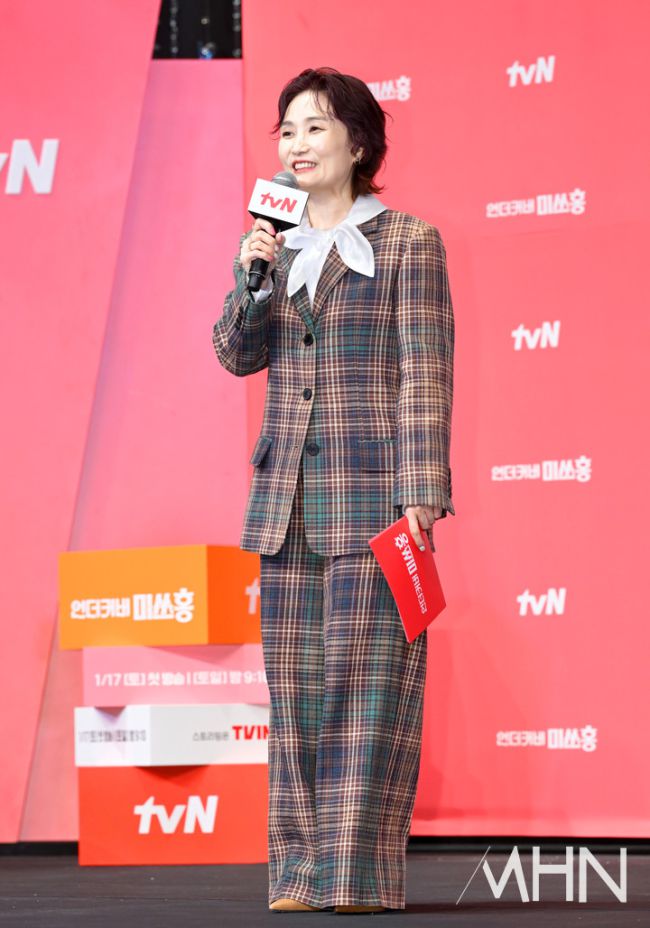 방송인 박경림이 12일 오후 서울 구로구 더링크서울 호텔에서 열린 tvN 새 토일극 '언더커버 미쓰홍' 제작발표회에 참석해 진행을 하고 있다. '언더커버 미쓰홍'은 1990년대 세기말을 배경으로, 30대 엘리트 증권감독관 홍금보(박신혜)가 수상한 자금 흐름이 포착된 증권사에 20살 말단 사원으로 위장 취업하며 벌어지는 좌충우돌 레트로 오피스 코미디 드라마.