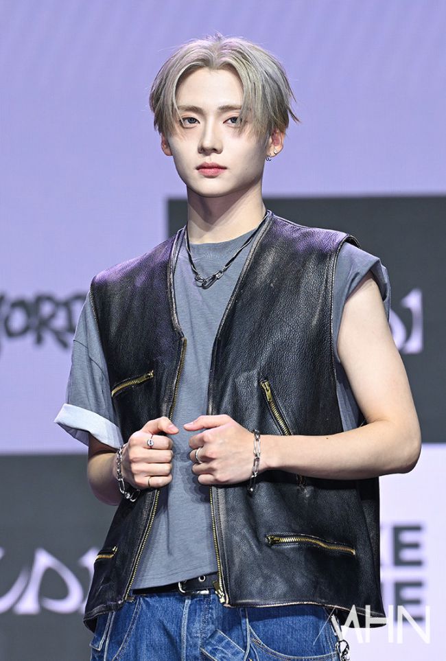 그룹 알파드라이브원(ALPHA DRIVE ONE) 상원이 12일 오후 서울 용산구 블루스퀘어에서 진행된 미니 1집 'EUPHORIA'(유포리아) 발매 기념 쇼케이스에서 포토타임을 갖고 있다. 알파드라이브원(리오, 준서, 아르노, 건우, 상원, 씬롱, 안신, 상현)의 미니 1집 'EUPHORIA'는 각자의 방식으로 꿈을 향해 나아가던 여덟 멤버의 여정이 하나