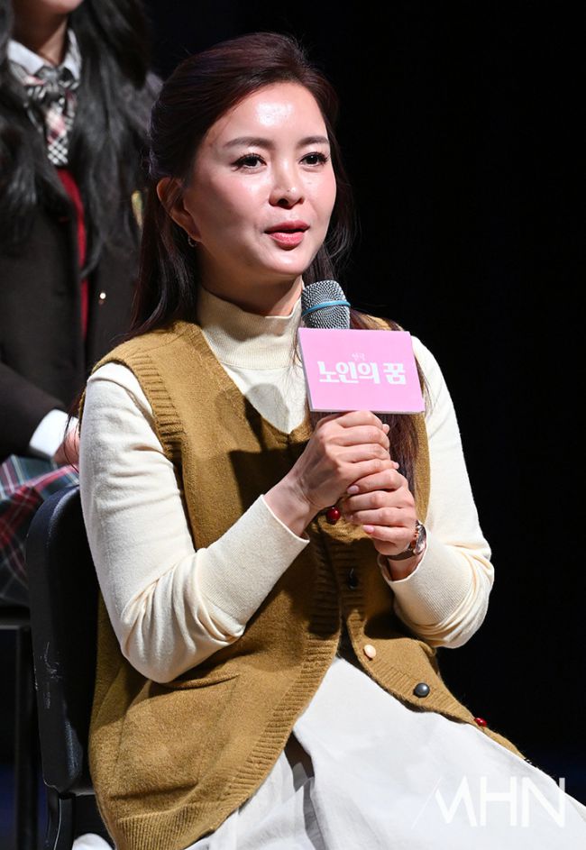 배우 신은정이 13일 오후 서울 강서구 LG아트센터에서 진행된 '노인의 꿈' 기자간담회에 참석하고 있다. 연극 '노인의 꿈'은 그 세월의 두께가 다른 두 여자가 만나 서로의 주름을 어루만지는 이야기다. '노인의 꿈'은 1월 9일부터 3월 22일까지 LG아트센터 서울 유플러스(U+) 스테이지에서 공연된다.