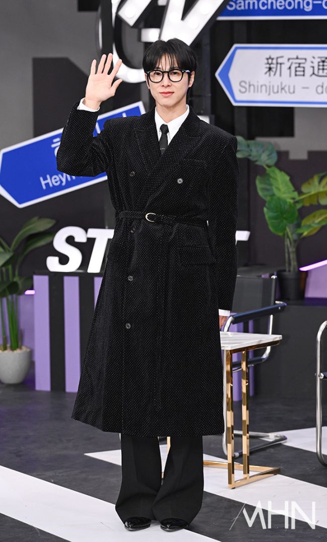 가수 유노윤호가 14일 오전 경기 고양시 빛마루 방송지원센터에서 진행된 '체인지 스트릿' 녹화 현장에서 포토타임을 갖고 있다. 현장에는 신동엽, 유노윤호, 강남, 마츠다 부장, 타카하시 아이가 참석했다. 한일 국교정상화 60주년 초대형 프로젝트 '체인지 스트릿(Change Street)'은 한국과 일본을 대표하는 아티스트들이 서로의 거리, 언어, 감성 속으